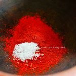 - In a ‘chatty’ (traditional clay cooking pot) pour 2 cups of water, add 2 tablespoons of chili powder (you can increase or decrease the quantity of chili powder based on your tolerance to the chili heat), salt and stir well.