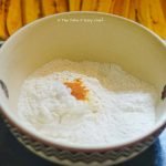 4. Mix well and make a batter by adding water a little at a time. The batter should be thick enough to stick to the banana while frying. If it gets too watery add more flour to balance the thickness.