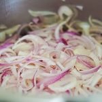 - Heat some oil in a pressure cooker and shallow fry the onions.