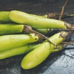 This recipe works well the long, green brinjal (eggplant/aubergine). You can use other varieties as well. The roasting time will increase as the bigger ones will require more time to be cooked through.