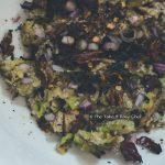 The cooking, which is just roasting the brinjal (eggplant/aubergine) and the dry chillies, is effortless. The roasted brinjal is peeled to remove the charred skin. The beautifully cooked flesh is carefully extracted, finely chopped and added to a mixing bowl. Roasted dry chillies, finely chopped shallots, and tamarind are added to the mixing bowl. Salt is the only seasoning we need (and the above-mentioned ingredients of course). A generous drizzle of coconut oil completes the ingredients. It is then mixed well with hand to combine well. Vazhuthananga Udachathu is ready to serve!