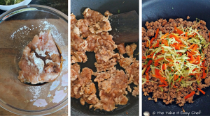 In a mixing bowl, add the minced chicken, corn flour, and dark soy sauce, and mix well. Heat the pan again, and cook the chicken mix until cooked. Add back the stir fried vegetables, add the oyster sauce, stir well, and cook again. Taste the mix, and add salt if required.