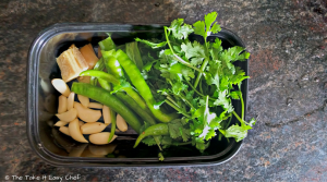 Slice the green chillies lengthwise, and deseed them. Chop the ginger, garlic, and coriander leaves.
