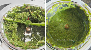 In a blender, grind the fried spices and the ingredients in step 3 by adding a little water at a time until you get a smooth paste. This is our Cafreal marinade.