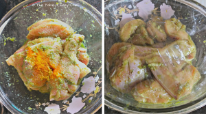 Clean and cut the chicken into medium or big pieces. I used 1 kg chicken which was cut into 10 pieces. Score the meat with a knife so that our marinade can work its magic.
