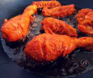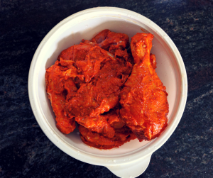 Coat the chicken pieces with this marinade. The pieces can be of small to medium size. I recommend against using the boneless pieces. This is a rustic style fried chicken. Get your hands dirty while you eat them.