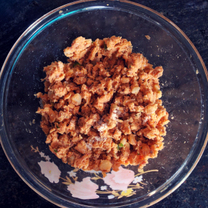 Clean the fish, place them in a pan (if you are using whole fish, remove the head), add a cup of water, 1/4 teaspoon turmeric powder, and salt. Cook on a medium flame with the lid closed for about 10 minutes. Drain the water, remove the bones, and separate the flesh into flakes using a fork. Ensure that no small bones are left behind. I used mackerels. They have a nice texture and flavour, and is ideal for cutlets (croquettes). You can use any fish or meat of your choice. If you want to save on the preparation time, use canned fish flakes (e.g. tuna flakes).