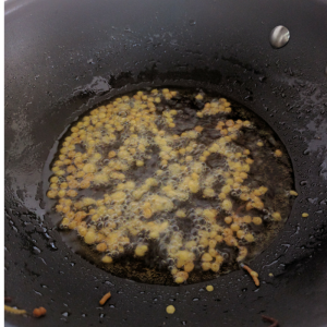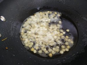 Fry the split chick peas until they turn golden brown, drain and keep in the tray.