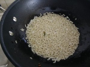 Fry the puffed rice and the flattened rice, and add to the mix.