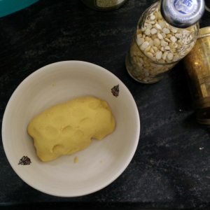 Start kneading the dough by adding water, a little at a time. Knead well. The consistency we are looking for is similar to, but a bit softer than, a chapati dough.