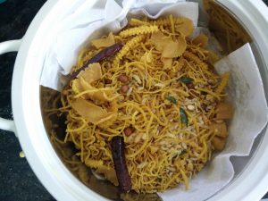 Kerala mixture is ready to serve. Transfer it to a clean, dry container, and it'll stay fresh for a long time (depending on how long you are able to resist the temptation and not snack on it for two days straight).