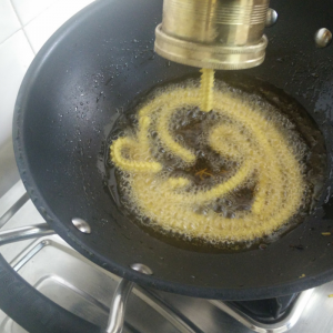 Repeat this in small batches changing the mold discs - we use the same dough, but the various shapes in which the dough gets fried makes it a "proper" mixture.