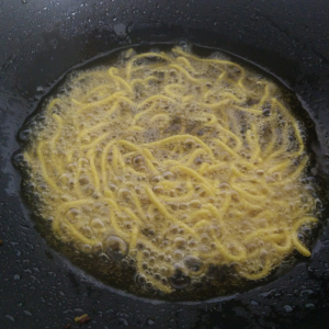 Fry them for a few seconds, drain and place them in the tray along with the other sev.