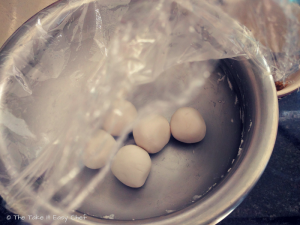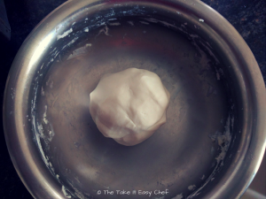 To keep the dough from going dry, cover the bowl with a wet cloth or a cling film.