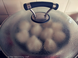 Repeat the steps 6-9 for the remaining dough balls. Place them on a steaming basket without touching each other. I used a sieve, but a steaming basket is ideal.