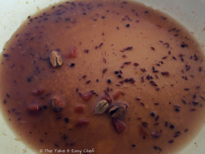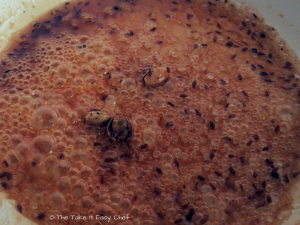 Tip: You can do away with this sauce if you crush and coarsely grind the cardamoms and add it to your Modak filling in step 2. Take a cup of water in a pan. You can use the same pan in which you made the modak filling. Crush the cardamoms and add to the water. Also add two tablespoons of jaggery, 1/4 teaspoon salt, cumin seeds and sesame seeds, and bring to boil.