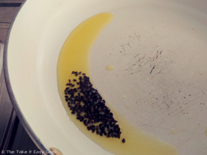 Heat one teaspoon ghee in a pan and fry the sesame seeds on a low flame.