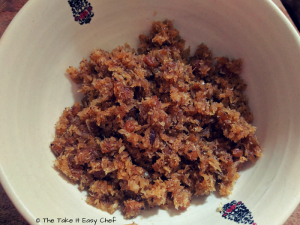 Switch off the flame, and keep the mixture aside to cool. This is the filling for our modak.