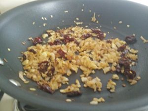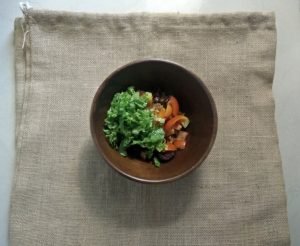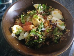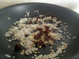 Transfer the fried onions and chilies to a bowl, and add the chopped tomatoes and lettuce.
