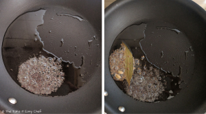 Heat some oil in a pan, splutter mustard seeds, followed by bay leaf, cumin seeds, and cardamom.
