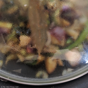 Cover and cook on a low flame till the brinjal pieces are tender.