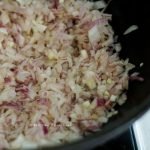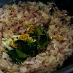 5. Add the curry leaves, finely chopped ginger and garlic when the onions start to turn brown.