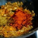 9. Add turmeric powder, chilli powder, coriander powder, and the crushed black pepper.
