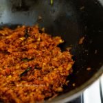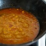 11. Add 1 1/2 cups of water and salt. Mix well and bring to boil on a high flame with the lid on to create the curry base.