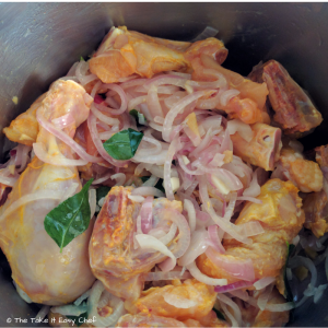 Wash the chicken pieces, and cut to small/medium sized pieces.