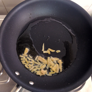 Heat some oil in a pan, and fry the ginger on a low flame.