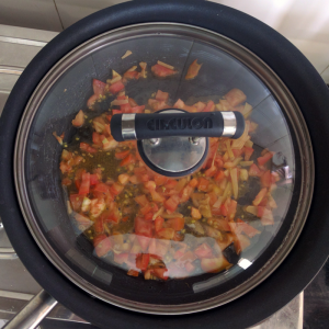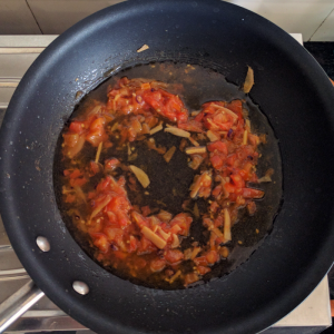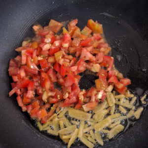 Fry for 2-3 minutes. Add chopped tomatoes.