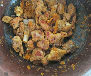 Transfer the lamb pieces to the clay pot and mix well with the onion-spice mixture.